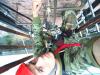 - отрезки шин и шинных лестниц соединены между собой соединительными элементами, а в начале и в конце, система имеет предохранительные замки, которые исключают возможность самопроизвольного выскальзывания тележки