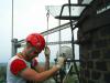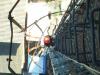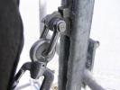 - страховочный трос из нержавеющей стали натягивается между верхним и нижним пунктами крепления при помощи натяжителя